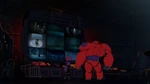 Meanwhile, Hiro and Baymax form a superhero team and track down Yokai to the island. Inside the Krei facility, they discover a recording that reveals the island's history. Just then, Yokai finds the team and attacks. A battle ensues in the facility, resulting in massive damage as the members try to disable the masked man. After many failed attempts, Yokai's true identity is revealed and he is forced to retreat.