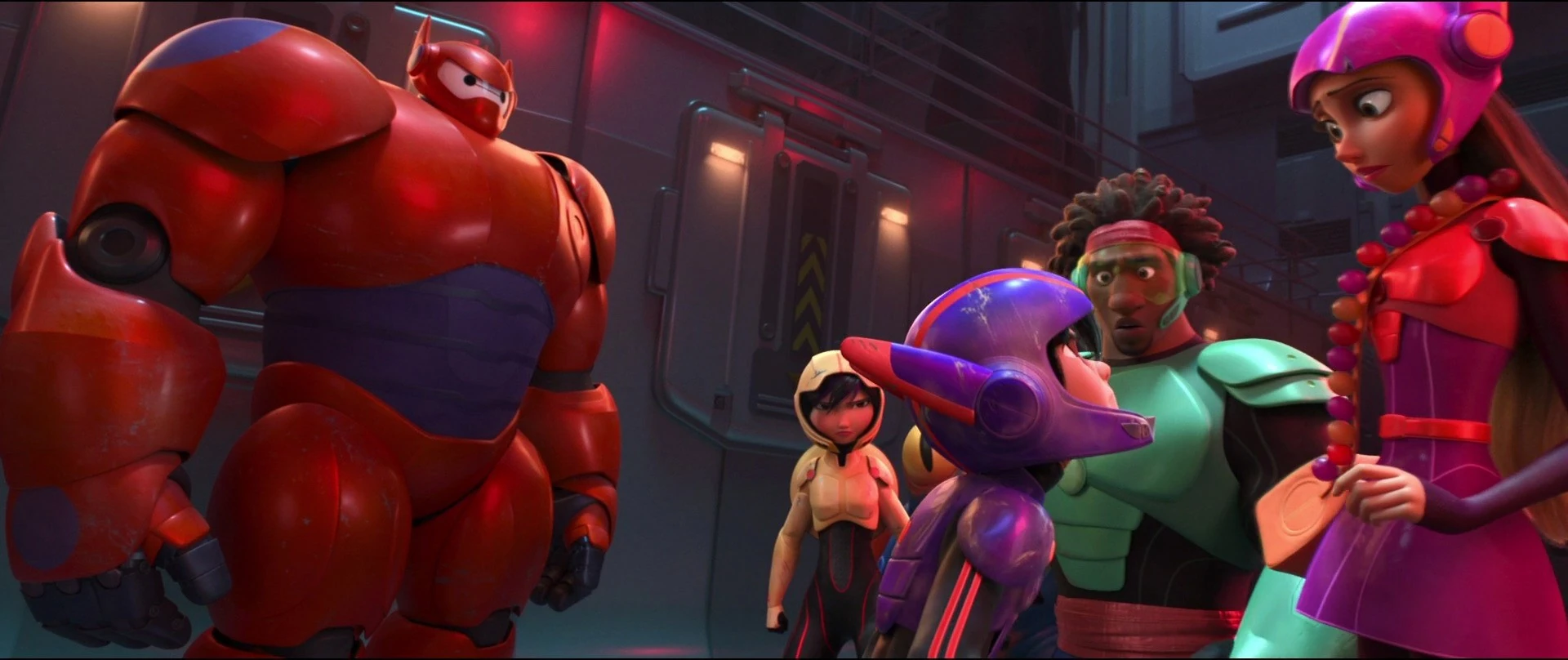 - Armors from the fictional video game "Hero's Duty" that appeared in Wreck-It Ralph can be seen as a toy in Hiro's room, and as a full-scale armor in Fred's room.