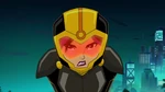 At Sycorax, Amara scolds Momakase and her henchmen, but Momakase reveals Hiro's identity to Amara and advises separating the team's leader. Before discussing more, Amara has the henchmen leave when Karmi visits Amara's office to inform Amara of her and Hiro's breakthrough. Taking advantage of this, Amara offers Karmi an "upgrade". Hiro then receives a call from Karmi who asks for his help, as Amara is hunting her at SFIT. Hiro and Baymax arrive only to find Bessie waiting at the entrance. Baymax wrestles Bessie but its electromagnetic blast shuts him down. Hiro goes in to rescue Karmi. While confiscating Baymax, Amara activates the bio-chip implanted on Karmi. Karmi mutates in front of Hiro and escapes into the night with Hiro and the microbots.