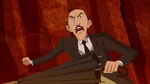 At Caviar Bazaar, Fred and Mini-Max find Heathcliff but are quickly attacked by another robot cobra, and then a mysterious woman who Heathcliff recognizes as Cobra appears to continue sending the robot snakes at them. Heathcliff destroys the snakes with his umbrella-sword, so Cobra decides to make an escape in her car—while Fred is again paralyzed by another cobra. Heathcliff takes Fred back to Big Hero 6's base, where Hiro watches the security footage and notices that Cobra stole his neurotransmitter tech to use for controlling the robo-cobras. Heathcliff then reveals to Hiro and Fred that before becoming the Frederickson's butler, he was a spy who fought against Cobra on multiple occasions and earned the nickname Mongoose; until he had to team up with Boss Awesome to thwart Cobra's ultimate scheme—and after Heathcliff saved Boss Awesome's life while making Cobra fall down a volcano, Boss Awesome welcomed him into the Frederickson family to remain undercover from the spy life. Still—Heathcliff was determined to defeat Cobra on a final one-on-one showdown, so he asked Fred again not to follow him as he prepared to leave the mansion. Fred initially agreed, but after remembering how Heathcliff had been there for him his whole life and was more than just their butler, decided to go help him.