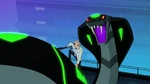 On a rooftop, Heathcliff and Cobra prepared to face off when Cobra activates her neurotransmitter—even though she had agreed to fight Heathcliff without any tech. She tells him that while climbing up the volcano, she realized the reason she always lost to him was because she always fought alone, but now that she controlled the robotic snakes she wasn't alone anymore. At that moment Fred and Mini-Max join in, and Fred tells Heathcliff that they would fight together because he is an important part of his family. Yet, several robot snakes get into his suit and Mini-Max tries fighting them off, so neither of them are actually able to assist Heathcliff. Cobra gets ready to attack Heathcliff, but he transforms his black suit into a white one that is immune to the cobras' venom, allowing Heathcliff to easily destroy them. It is then that Cobra reveals a gigantic cobra which she uses to continue fighting, and was close to defeating Heathcliff until Hiro and Baymax arrive and take the neurotransmitter from her, thus disabling all the robot snakes while Hiro tells her to get her own tech.