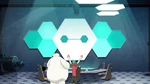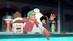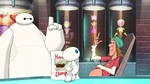 Hiro, Baymax, Mini-Max and Fred are at Frederickson Candy Co., where Hiro is busy syncing Basemax with all of the team's robots. Fred had bought Noodle Burgers for the whole team, but Wasabi, Honey Lemon and Go Go are absent, so he continuously sends them text messages which they never respond.