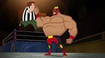 The episode starts with Mr. Yama biding inside prison as Mega Yama arrives to break him free. Hiro and Baymax, soon joined by the rest of Big Hero 6, intercept it. Baymax defeats the robot with dual rocket fists and foils Yama's escape plan. Afterward, the team goes to a mecha-wrestling match hosted by Richardson Mole, to Fred's fury. The first round's contender, El Fuego, is pitted against Uncle Samurai. Honey Lemon becomes engrossed as the match starts, where El Fuego tosses Uncle Samurai to the crowd, then hits Uncle Samurai back with a bleacher until he is discreetly signaled by Richardson to lose the match. When the match is over, El Fuego voices his frustration of losing before Richard states it's his job as the "bad guy" to make the "good guy" look good.