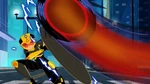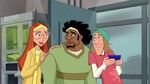 Elsewhere, Sue and Stu have Roddy tied to a chair. Roddy doesn't build lairs for villains anymore, considering he had been stiffed before, but Sue threatens him into making an exception. He's appalled by the warehouse they're in, so they try different warehouses until Big Hero 6 comes to rescue Roddy. Sue and Stu have the upper hand, and soon trap the team under rubble.
