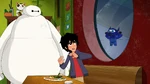 Eventually, Cruz and Hiro make it back to San Fransokyo (with Baymax being taken back somehow as well), and the next day at the Big Hero 6 base, the team congratulates Fred for being brave and accepting responsibility for what he did. They tell him that they bought Noodle Burger chicken breakfast burgers in his honor, so Fred starts "self-narrating" about it, only for Go Go to shove a burger in his mouth and telling him not to narrate.