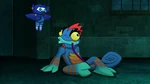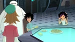 Still hiding from Bessie, Hiro asks Cruz why he hates Big Hero 6 so much, so Cruz reveals to him that when he was a kid, Boss Awesome showed up in the city but so did several villains trying to defeat him. Then one day, one of the villains attacked Cruz and his father, and though Cruz managed to escape, his father died and Boss Awesome showed up too late. Cruz then told Hiro that superheroes can't save everyone, claiming that Big Hero 6 is doing more harm than good and that he would do anything to protect Megan. Upon hearing about Cruz being protective of his family, Hiro starts searching around the forest while Cruz is confused about it. Eventually, they find three Monster Cubs playing in a mud puddle, so they decide to take them to Bessie, who is calmed down after seeing the cubs and finally leaves Cruz and Hiro alone.