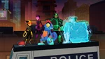 Fred is caught and arrested by the police when his suit's invisibility function glitches during night patrol; the others have to break him out of the police transport.