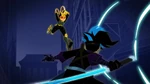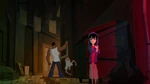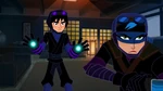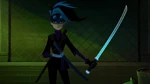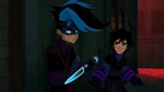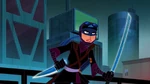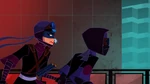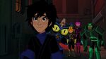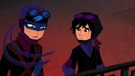 In the alleys, Hiro meets up with Momakase and provides her a Flexible Display Technology mask. Using Hiro's sonic gloves and the masks' invisibility, he and Momakase storm Yama's place and disable both the cameras and thugs. Meanwhile, the rest of the team watch a news report of Cruz releasing Yama for the investigation right when Basemax alerts them she has detected Momakase. Sensing something is amiss, Big Hero 6 head to Yama's headquarters. Once Hiro and Momakase enter Yama's office, Momakase retrieves what she was looking for—a pair of Daishō swords. After exiting, Momakase explains the blades are her family's heirloom traded away years ago for their protection from gangsters. Hiro briefly sympathizes with her; suddenly, Yama confronts the two. The two incapacitate Yama before heading out, where Big Hero 6 confronts them at the beginning of the episode.