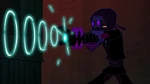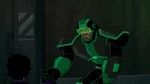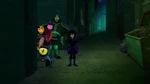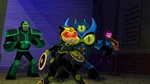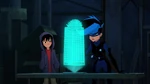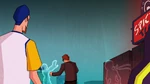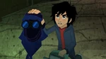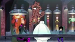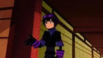 After an unsuccessful night patrol, Hiro heads to the garage to fix the Fredmeleon suit where he encounters Momakase waiting for him. Reminding him she learned about their identities from her employer, Momakase forces Hiro's cooperation in helping her with a mission.