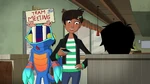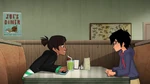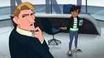 Hiro explains the whole story and the scene shifts forty-eight hours earlier at Joe's Diner. During Hiro's lunch date with Megan Cruz, Megan was distracted by the slow progress on her Big Hero 6 investigation. After receiving a text from Chief Cruz that Momakase escaped from prison, Megan decides to change the subject and invites Hiro to a movie. At that moment, Fred (in his Fredmeleon suit) summons Hiro to a mandatory meeting, forcing Hiro to leave Megan. At Frederickson Candy Co., the team tries tracking Momakase with Basemax, only to turn up without a trace due to Momakase taking precaution. Big Hero 6 decide to head out on night patrol despite their relations with Cruz and the SFPD. Meanwhile, Megan analyzes the relationship between Alistair Krei and Momakase and sets out to interview Krei. Krei denies associations with the heroes, and when Megan presses for more, Krei forces her out. As Megan leaves, she notices Hiro's picture among Krei's employees and takes a picture of it for her conspiracy wall.