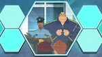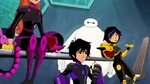 Having brought the team up to speed, Hiro apologizes for misleading them, but the team forgives him as they understand why he did what he did in that situation. Just then, the police arrive looking for the heroes. Momakase stays behind to lead them away in gratitude for Hiro's help. After Momakase takes off with the police, the team regroup at headquarters relieved that their identities are safe. Meanwhile, Megan has connected all of Big hero 6's cases tracing to Hiro.