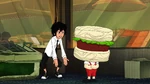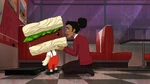 Noodle Burger Boy goes back to his former restaurant where he is found by Sara, the restaurant manager. She is relieved and happy that he is back, despite his criminal activities. But Noodle Burger Boy is still malfunctioning and destroys the restaurant telling again that he has to go home. He sings his song while running havoc.
