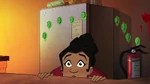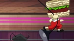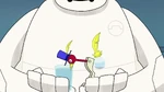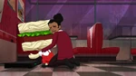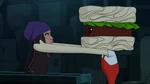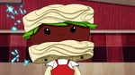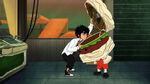 Noodle Burger Boy takes Hiro, Baymax and Krei to the Noodle Burger factory where he traps Baymax in a silo filled with potatoes and Krei spellbound on the production line to be 'deep fried'. Hiro accepts to fix Noodle Burger boy and successfully repairs all his damaged caused by the salty bay water. He then attempts to remove Obake's chip by telling him that he needs to reboot so the fixes will be permanent. But before he can remove it, Trina suddenly appears and prevents Hiro from turning her brother good again. Hiro uses his previously developed super-magnet to distract them long enough to safe Krei from falling into the fryer. Trina and Noodle Burger Boy escape.