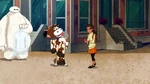 At Krei Tech, Hiro is busy with holding a mirror for Alistair who asks him which smile he should use in public. Hiro is on the verge, telling that he didn't mean his internship being like this and that he misses helping the others to find Noodle Burger Boy. Later suddenly appears and attacks them, revealing that he needs Hiro to fix him.