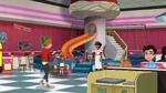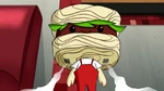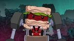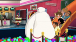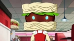 The next day, Fred, Hiro, Wasabi and Baymax go to Noodle Burger and Fred shows his friends that he is a Titanium Member at the restaurant and he also has his own reserved places. The team is attended by Noodle Burger's new animatronic mascot, Noodle Burger Boy, who gives Fred his Friday favorite burger and scans Hiro and Wasabi because they are new customers and he also gives Baymax several stickers of Noodle Burger Boy himself. That same night, Obake breaks into the restaurant and steals Noodle Burger Boy for his scheme.