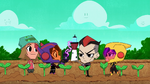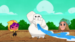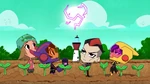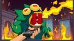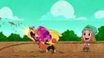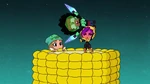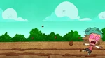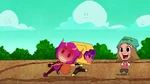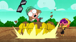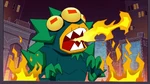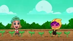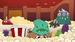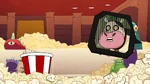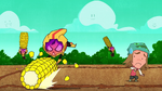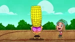 Go Go tells Fred that they should start the Kentucky Kaiju movie. But Fred yelled that he must have popcorn to eat. Go Go brings Fred outside in his backyard and draws Fred's face on the dirt. Then she slaps a piece of corn all over the ground. She brings Honey Lemon and places soil all over the ground using her chem-purse and then gets Baymax to water the plants. The corn sprouts start to grow. She then get's Hiro with his energy amplifier and Obake with his lighthouse and both of their objects created a sun in the sky. The corn then explodes from the ground with Fred, Go Go, and Wasabi all launching into space and on top of the corn. Go Go goes back down to the ground with Wasabi cutting down the corn. Then she makes Fred put on his Fred-zilla suit where he breathes fire on all the corn that fell into the sky, which turns into popcorn. Fred's room ends up being full of popcorn, but he then claims they will need butter. Both then dive into the popcorn to go make butter, and a distressed cow appears in a speech bubble.