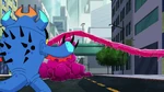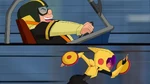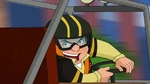 Unfortunately, this time Richardson's call was a real emergency because he was being kidnapped by Supersonic Stu, who brought him to Supersonic Sue at their hideout. Sue expected Stu to kidnap Mayor Saito to lure Boss Awesome into a trap for revenge, so she is confused when she sees Richardson and asks Stu for an explanation. Richardson tells her that he is the Mayor for the day and after hearing that they're seeking revenge against superheroes, decides to take this opportunity against Big Hero 6 for ignoring him by teaming up with the villains. Sue and Stu call Big Hero 6, making it seem that Richardson is their hostage, and tell them to meet at Night Market Square without calling the police if they wanted to save Richardson. Big Hero 6 feel guilty that the previous call was a real emergency they ignored, so they gear up to go save Mole. However, upon arriving at Night Market Square and briefly fighting Sue and Stu, Richardson reveals himself driving Sue's "Supersonic Shoe" vehicle as he begins to attack the heroes, who realize the call was a trick. Sue and Stu are quickly put out of combat but Richardson continues to chase and attack the heroes. Hiro and Wasabi soon figure out a weakness and pull the roller-skate-shaped vehicle's shoelaces, causing it to crash and be destroyed. Sue and Stu escape when they hear police sirens approaching, and Fred grabs Richardson, telling him he was busted. Yet, Richardson calmly tells them that he'll just deny his crimes and everyone will believe him because he's Mayor for a Day–until he turns his head and sees that reporters have been recording his confession. Richardson then runs away in fear, and Bluff Dunder tells the heroes that since Richardson would have to be removed from office due to his actions, the person with the second biggest donation would become the next Mayor for a Day.