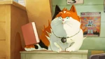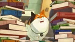 Baymax then cleans the room to the rhythm of the music with the help of Mochi, until everything is in order. As they finish cleaning up, however, Baymax accidentally bumps with a shelf, moving a soccer ball that drops a book on Mochi's tail and scares him, causing him to destroy the book, leaving the room messy once again.