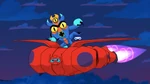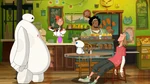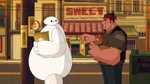Back in the city, Fred, Baymax, and MiniMax continue the search for Mochi still not finding a trace of him. Fred begins to fear the worst if they don't find him, but then suggests they disguise MiniMax as Mochi. MiniMax doesn't make a good cat impression, so Fred remembers that Baymax can scan "for things and stuff" and realizes they could've saved themselves a lot of time. Baymax begins scanning and finds Mochi in a trash can. MiniMax goes after him, but Mochi jumps away onto a bus. Fred then tells Baymax and MiniMax there's only one other option and pushes an app on his phone.