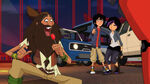 Meanwhile, at the Lucky Cat Café, Go Go opts to accompany Hiro and Krei to Muirahara since she has the wilderness experience. On that note, Honey Lemon, Wasabi, Fred, Baymax, and Mini-Max volunteer to watch the café while Aunt Cass attends to a catering event that day. In the woods, at Ned's treehouse, Ned is accosted by Amara before he is ambushed and incapacitated by Chris. Amara then places a transdermal patch on the unconscious Ned.
