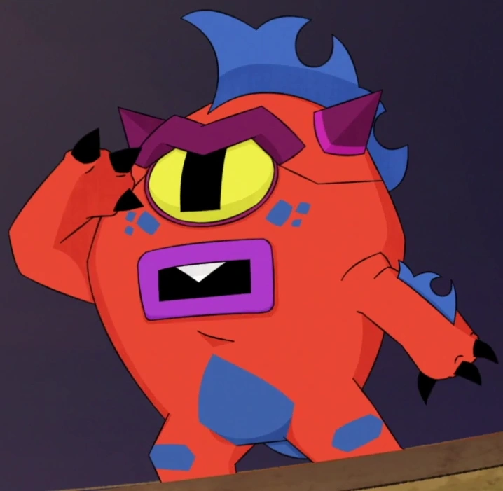 His kaiju super-suit was similar to Fred's, although the design was quite different since it was orange, had a square mouth and a single eye. It also featured cup holders, something that Fred's suit didn't have.
