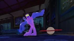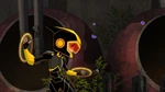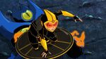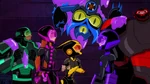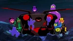 After scouting the city, the team heads Akuma Island. There, they find Globby, and Hiro tells him they intend to force Nega-Globby out then capture it with his Glob-Vac. Though reluctant, Globby accepts. Honey shoots the cure into Globby, causing Nega-Globby to emerge out of Globby. The monster throws the Glob-Vac at a heap before attacking the team, but they counter with combined attacks and separate Nega-Globby down to smaller blobs. As Hiro and Baymax head to retrieve the Glob-Vac, Nega-Globby pulls them and the rest of the team in, combining with the rubble to grow bigger. Globby seemingly submits, but then emerges in a butterfly form and lands on Nega-Globby to free the others. Nega-Globby seemingly crushes Globby before turning to the team, but the monster implodes from internal pressure by Globby. Hiro then vacuums the monster's remnants and traps it. However, Chief Cruz confronts them on helicopter and holds them under arrest for helping Globby. Big Hero 6 and Globby then escape.