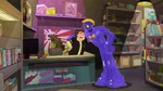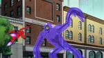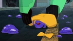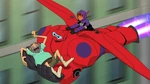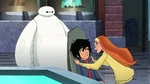 Out on the streets, Nega-Globby tries to correct people with things that he thinks are being done incorrectly, yet only managing to scare them away. This causes him to slowly turn gigantic, at the same time acting like before he was given his brain. Big Hero 6 sees this in the news. Realizing that their plan to help him has failed, they decide to trap him inside the Glop-Vac again. The team and Globby defeat Nega-Globby, but before sucking in his last blob, Globby feels compassion for him and mentions he knows what it's like to feel alone. Hiro tells him they'd like another solution to help Nega-Globby but are out of options, until Fred comes up with an idea: They take Nega-Globby to Richardson Mole at his comic book shop, where the team sees that Nega-Globby and Richardson get along as they attempt to top every argument they make.