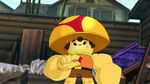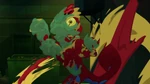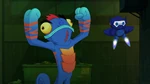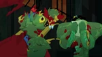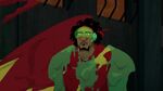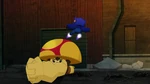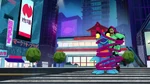 During nighttime, Wasabi, Fred (in his Fredmeleon suit) and Mini-Max fight against Crushroom, who caused trouble in the city by throwing and destroying random civilian cars. Fred and Wasabi are easily defeated when Crushroom entagles both with Fredmeleon's tongue, but Mini-Max flies into action. Crushroom taunts him by calling him a baby, and interrupting his heroic speech by punching him away. As Fred saves Mini-Max, Crushroom sees the chance to escape and Mini-Max expresses frustration about being called a baby by her. Fred comforts him by calling him a "big boy" and, ironically, telling him he'd get a piggyback ride back home.