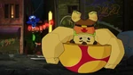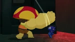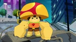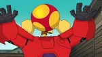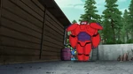 Meanwhile at the Big Hero 6 base, Maxi-Max hides in a corner, feeling like a failure for being unable to beat Crushroom in both his own body and Baymax's body. Fred again comforts him, telling him that every hero fails once in a while no matter their size.