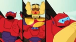 - Fred, Mini-Max and Wasabi are the only members of Big Hero 6 to wear their armors in this episode.